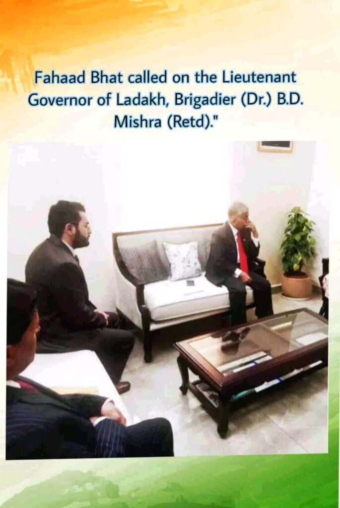 New Delhi, Nov 09, 2023: Mr. Fahaad Bhat, the Founder and President of Being Humane Charitable Trust, called upon the Lieutenant Governor of Ladakh, Brigadier (Dr) BD Mishra (Retd), in a significant gathering at Ladakh Bhawan. The engagement saw a thoughtful dialogue unfold, delving into a spectrum of crucial issues impacting the region. The discourse navigated the intricate developmental landscape of Ladakh as a Union Territory, placing a distinct emphasis on the promotion of peace, educational advancement, and the overarching progress of the region. This rendezvous marked a pivotal moment in addressing Ladakh’s challenges and shaping a path towards holistic development.